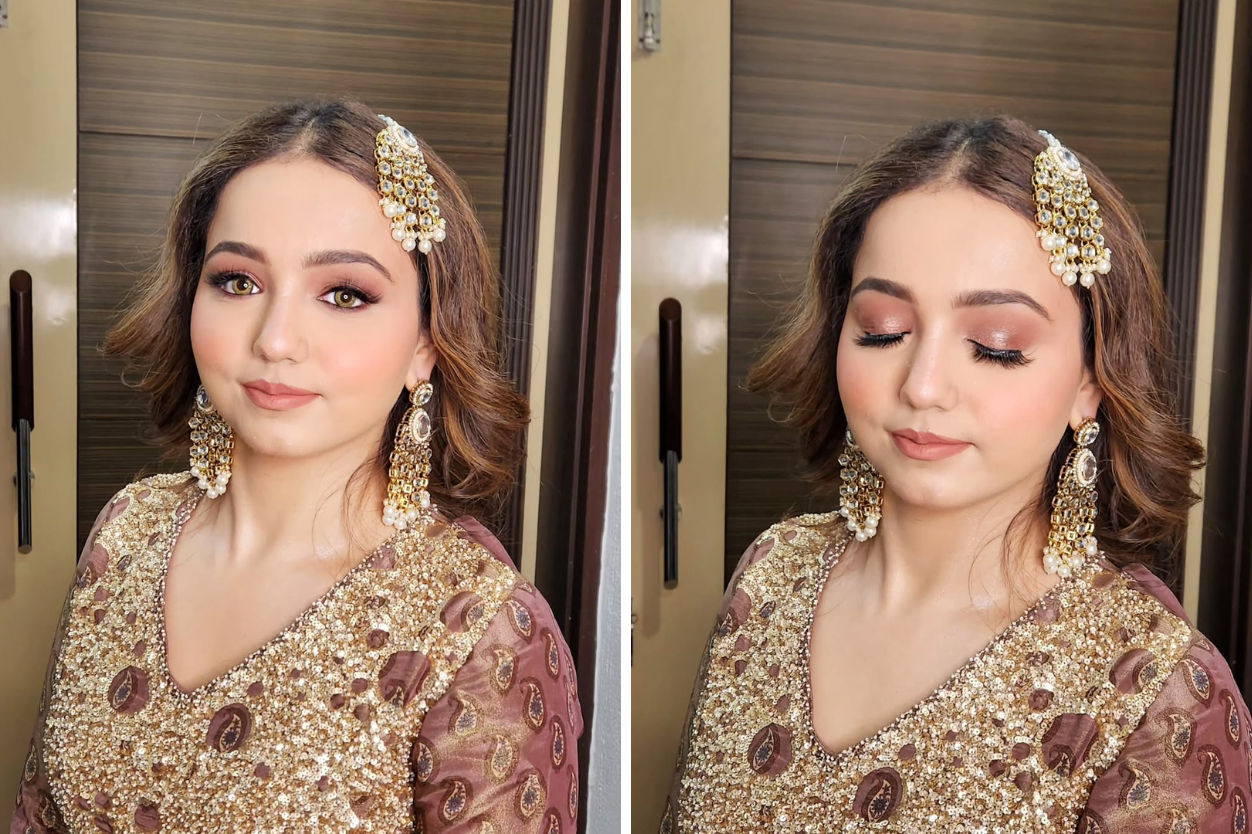 Engagements and receptions are celebrations where all eyes are on you—and your makeup should speak volumes. At Muskan Glam Studio, our engagement and reception makeup services in Noida are tailored to reflect your unique charm with a touch of luxury. Whether you desire a soft romantic look or bold glam with shimmering eyes, we ensure your look perfectly complements your outfit and jewelry. Our professional artists use premium makeup brands and flawless techniques to create a luminous, photogenic finish that lasts all night.