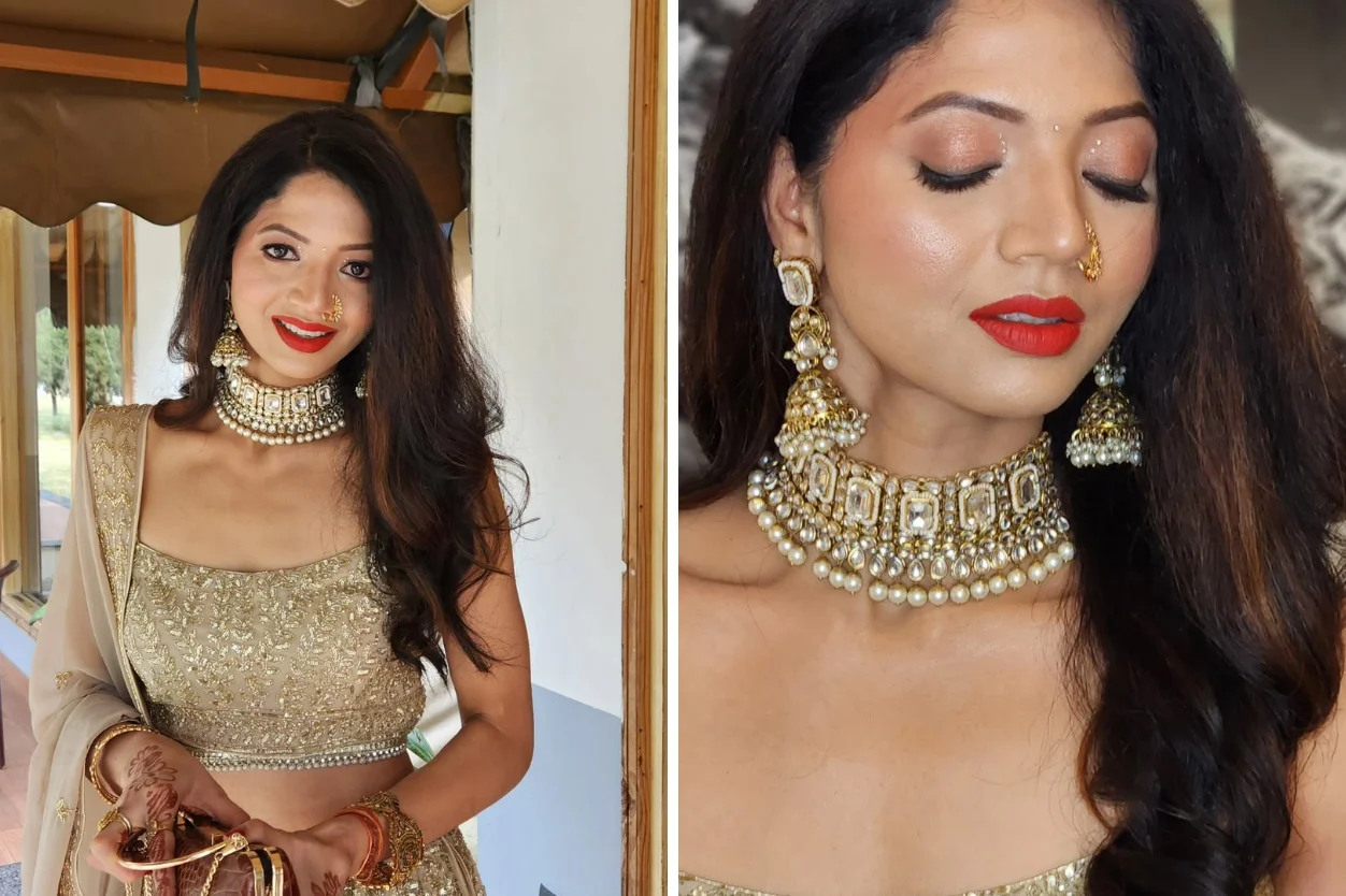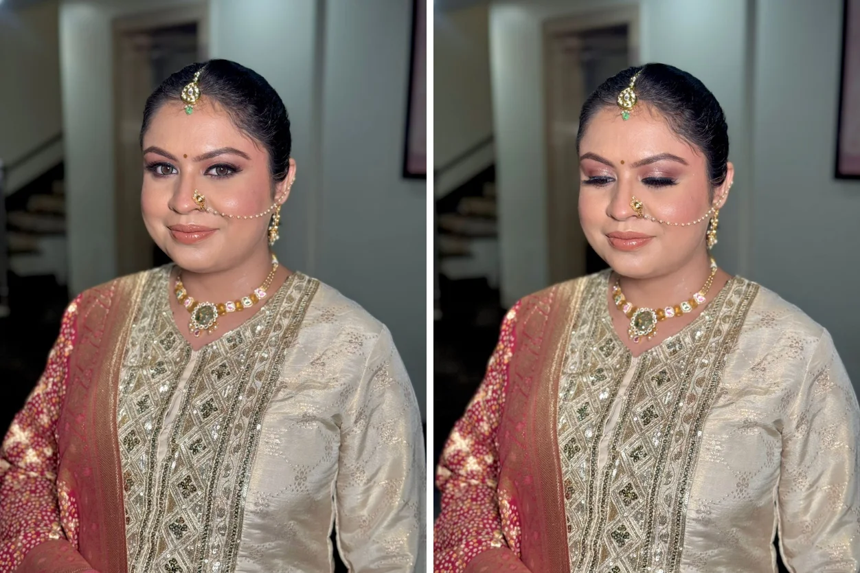 Whether you’re heading to a cocktail night, birthday bash, festive celebration, or corporate gala, our party makeup services promise to elevate your glam game. At Muskan Glam Studio, we create personalized looks that range from soft and subtle to bold and dramatic—always keeping your style and the occasion in mind. From natural to glamorous, we specialize in HD bridal makeup, airbrush bridal makeup, and traditional Indian bridal styles. Every stroke is a promise of long-lasting elegance, flawless finish, and a radiant bridal glow. Trust us to make you shine, because your wedding day deserves nothing less than perfection.